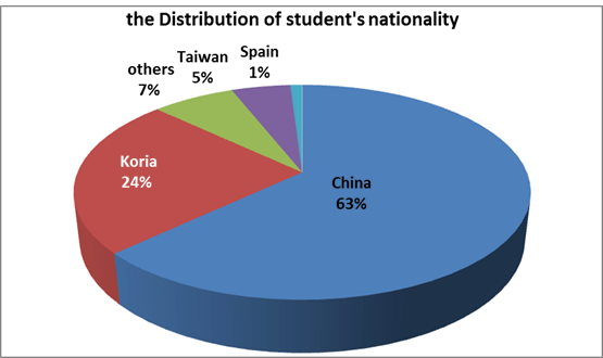 Chinese63%, Koria24%, Taiwan5%, Spanish1%, others7%(Hong Kong,Indonesia,Australia,Thailand,India, Bangladesh)