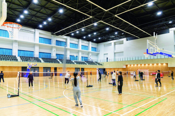 Completed in 2023, the gymnasium features practice areas for eight sports and a training room on the first floor, a main arena and sub-arena on the second floor, and spectator seating on the third floor.